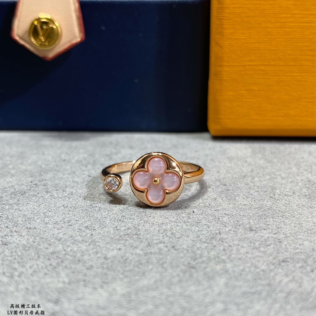V Gold Plated Mic Gold Size: 5678. 🔥🔥 LV premium precision round mother of pearl ring 💍 Beautiful flowers bloom with brilliant rose golden light on mother of pearl. It takes months of meticulous craftsmanship to polish these delicate curves and sparks on diamonds. This dazzling jewelry collection will create the most charming personal style.